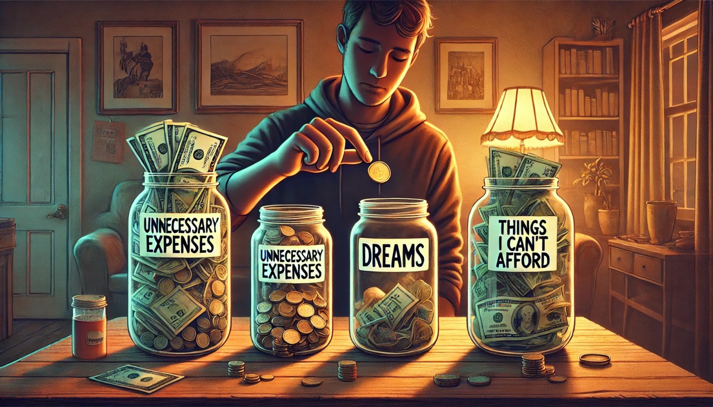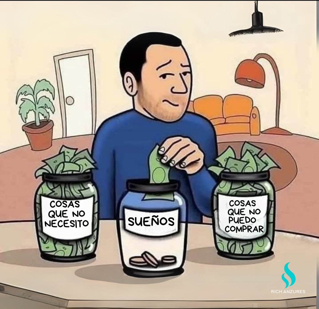 La imagen que ves aquí representa una verdad incómoda: muchas veces destinamos nuestro dinero a cosas que no necesitamos o cosas que ni siquiera podemos pagar, mientras que nuestros sueños quedan relegados a unas cuantas monedas.